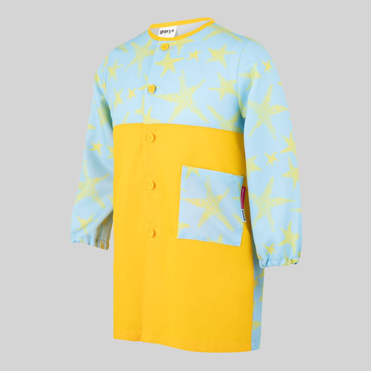 Descubre la magia del Babi Lucero Agatha, una elección vibrante y cómoda para los más pequeños en su jornada escolar. Este babi, diseñado con el sello inconfundible de Agatha Ruiz de la Prada, fusiona la elegancia del uniforme colegial con un toque de diversión. Presenta un encantador estampado de estrellas amarillas sobre fondo azul en la parte superior, las mangas y el bolsillo frontal, contrastando con el tejido liso amarillo en el resto de la bata. Fabricado en Bari, garantiza resistencia y durabilidad, adaptándose a la vitalidad de los alumnos. El cuello redondo, el cierre frontal mediante botones y las gomas en los puños ofrecen un ajuste cómodo y práctico para los niños colegiales en constante movimiento. Descubre la fusión de estilo y calidad con el Babi Lucero Agatha, una opción encantadora que hará que cada día escolar sea una aventura llena de estrellas. ¡Viste a tus pequeños con un toque de creatividad y comodidad!