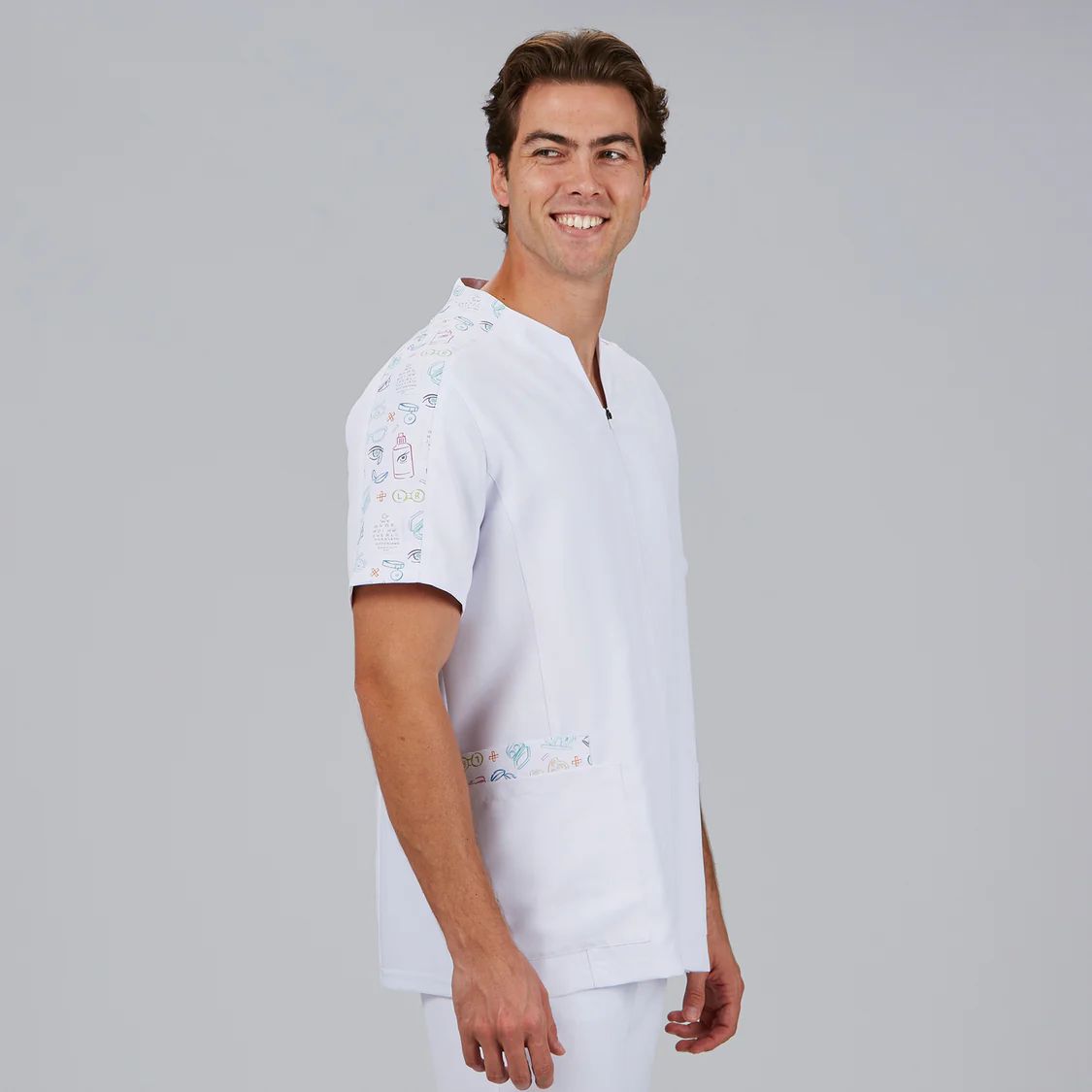 La blusa para hombre Liam de Garys es una prenda de alto rendimiento técnico que redefine el uniforme sanitario masculino a través de la innovación y el diseño ergonómico. Confeccionada en microfibra de bajo gramaje (148 gr/m²), esta casaca destaca por su ligereza extrema y sus propiedades antibacterianas, garantizando una higiene superior y un secado ultra rápido. Su estructura incorpora costadillos traseros con tecnología Air Dry, un panel de ventilación activa que optimiza la regulación térmica durante las jornadas más intensas. Con un sofisticado cuello chimenea con escote en V y un cierre central mediante cremallera invertida, la blusa Liam ofrece una estética minimalista y profesional que no requiere planchado. Es la elección definitiva para clínicas dentales, farmacias y centros de bienestar que buscan un uniforme vanguardista, fresco y de máxima durabilidad.