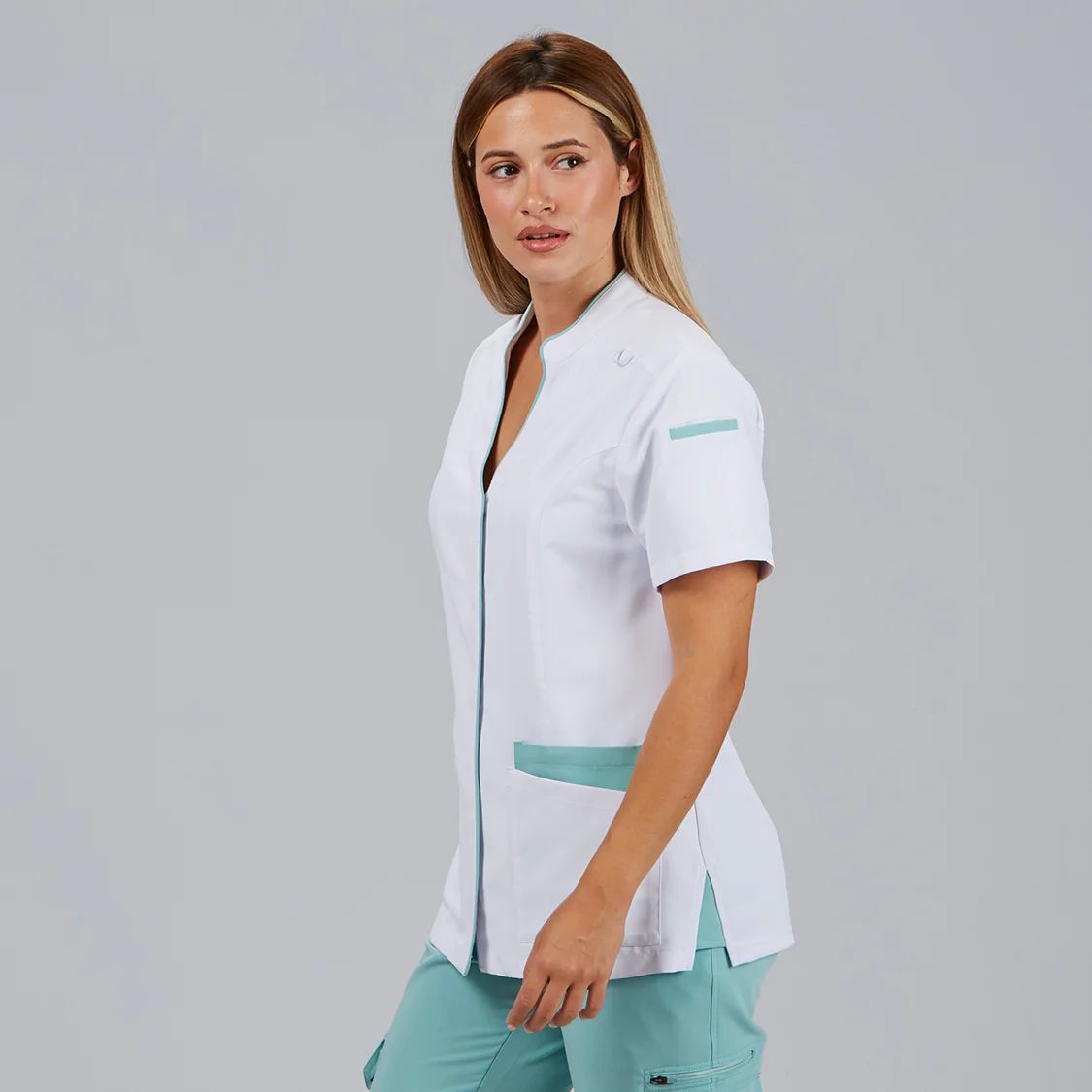 La blusa para mujer Ylena de Garys es una prenda de ingeniería textil diseñada para profesionales de la salud, la estética y la atención al cliente que exigen el máximo rendimiento y organización. Confeccionada en la innovadora microfibra 360 (170 gr/m²), esta casaca ofrece una elasticidad bidireccional excepcional, permitiendo un ajuste M1 muy estilizado sin sacrificar la libertad de movimiento. Su diseño destaca por un elegante cuello mao con escote en V y un sistema de almacenamiento superior que incluye cuatro bolsillos frontales y uno táctico en la manga. Para garantizar el confort térmico durante jornadas intensas, incorpora paneles Air Dry en los costadillos traseros, optimizando la circulación del aire. Es la solución definitiva para clínicas, farmacias y centros de bienestar que buscan un uniforme técnico de alta gama, antibacteriano, de secado instantáneo y que mantiene una imagen impecable sin necesidad de planchado.