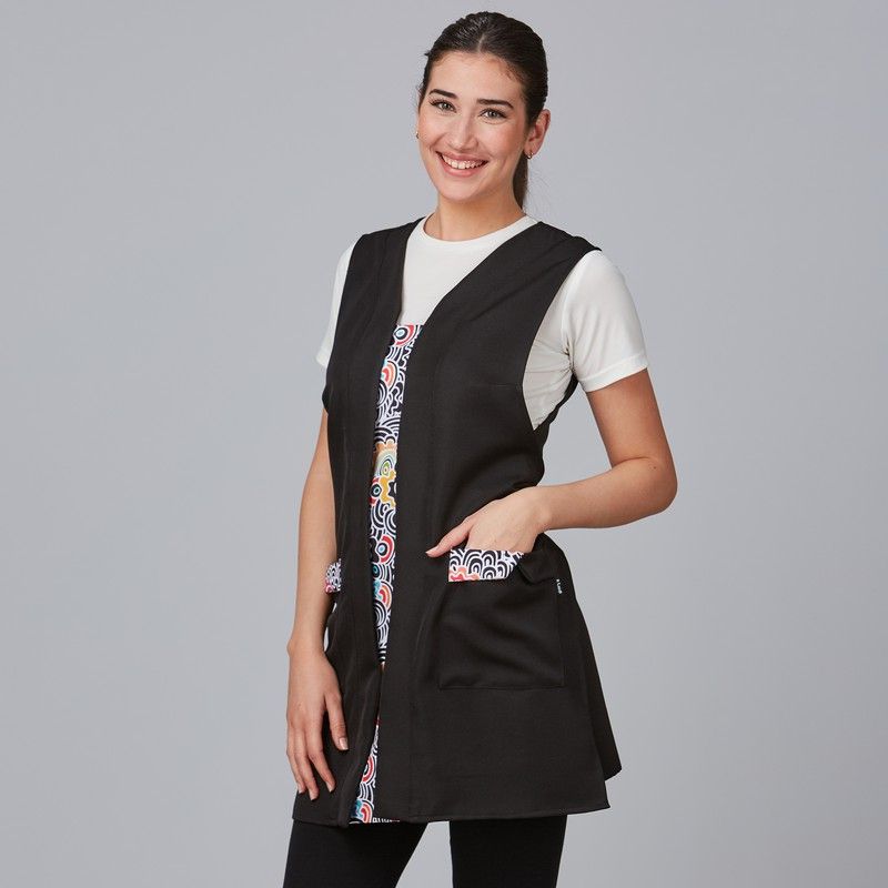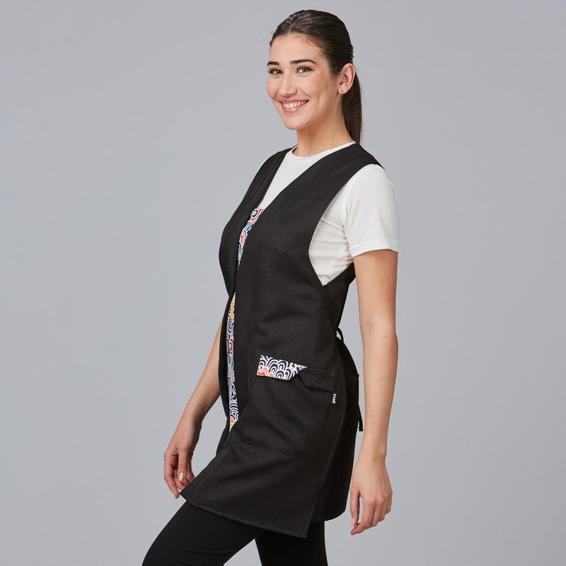 Étole chasuble noire associée à un imprimé original, ajoutant une touche de style unique.Dotée de deux poches latérales, cette chasuble vous offre un espace supplémentaire pour ranger les outils et accessoires essentiels à votre travail quotidien.Les bretelles latérales rembourrées en biais permettent un ajustement parfait, garantissant un confort tout au long de la journée de travail.Le design soigneusement étudié comprend un décolleté cache-cache sur le devant et un décolleté cache-cache dans le dos, ajoutant une touche de sophistication à votre uniforme.La combinaison du design stylisé et original de cette chasuble vous permet de vous démarquer dans l'industrie de la beauté, en projetant une image de professionnalisme et d'élégance.Le choix de matériaux de haute qualité et un design élégant distinguent cette chasuble de la concurrence, démontrant votre engagement envers l'excellence.