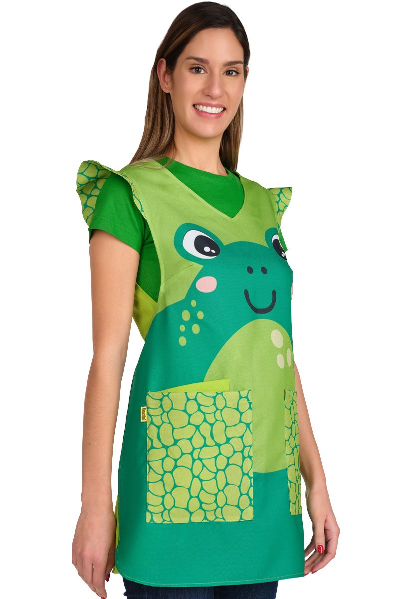 La estola para profesora Ranita de Lacla es una prenda técnica de alta gama que fusiona la narrativa infantil con un patronaje sofisticado. Confeccionada en poliéster 100% de alta durabilidad, esta estola presenta un encantador diseño frontal de rana que fomenta un ambiente lúdico y cercano, ideal para la educación temprana. Su diseño se enriquece con unos elegantes volantes en los hombros que aportan un toque distintivo y femenino, equilibrando la funcionalidad con la moda profesional. Equipada con un sistema de cuatro bolsillos estratégicos, permite una organización meticulosa de bolígrafos, pegatinas y material escolar, manteniendo siempre las manos libres para la actividad docente. Gracias a su tejido "todoterreno" resistente a la decoloración y de secado ultra rápido, la estola Ranita garantiza un mantenimiento mínimo y una imagen impecable, adaptándose perfectamente a cualquier silueta mediante sus atadores laterales regulables que aseguran una libertad de movimiento absoluta durante toda la jornada escolar.